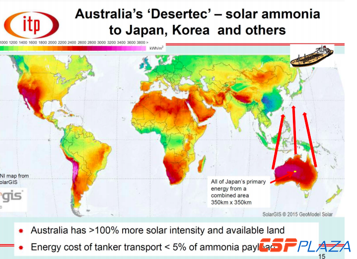 圖:來自澳洲的沙漠太陽熱能有望通過氨輸送至韓國日本等國家