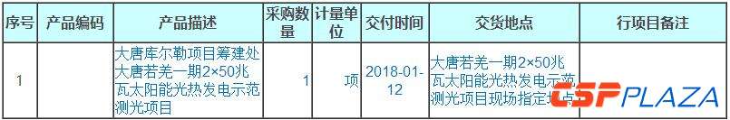大唐庫爾勒項目籌建處大唐若羌一期2×50兆瓦太陽能光熱發電示范測光項目詢價采購詢價結果公告