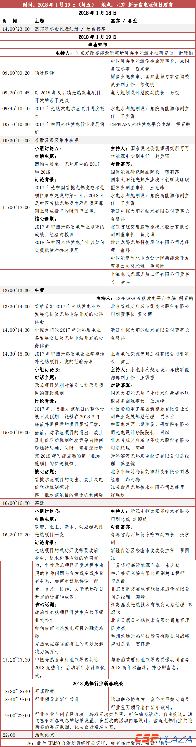CSPPLAZA光熱發電網訊:由CSPPLAZA主辦、常州龍騰光熱科技股份有限公司聯合協辦的中國光熱發電產業回顧與展望領導者峰會暨CSPPLAZA2018新年匯(CPM2018)將于1月19日在北京盛大召開。