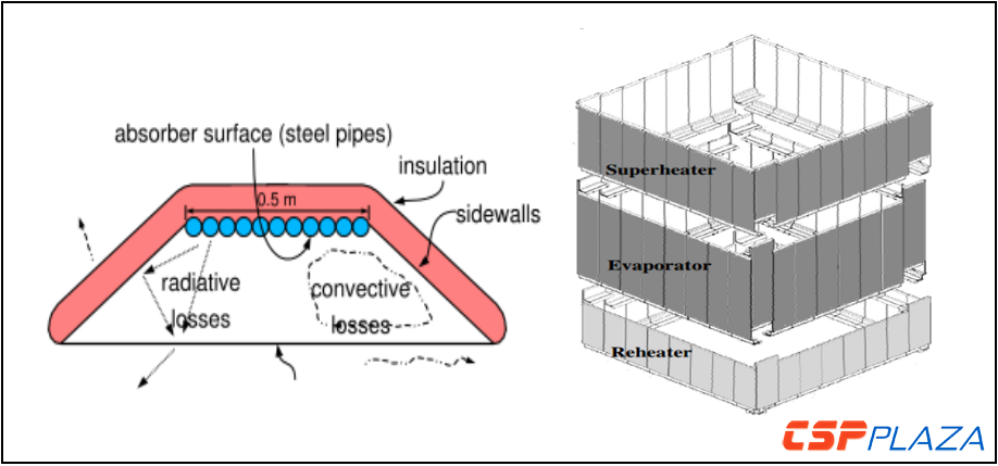 圖:現有的菲涅耳和塔式DSG項目集熱器示意圖