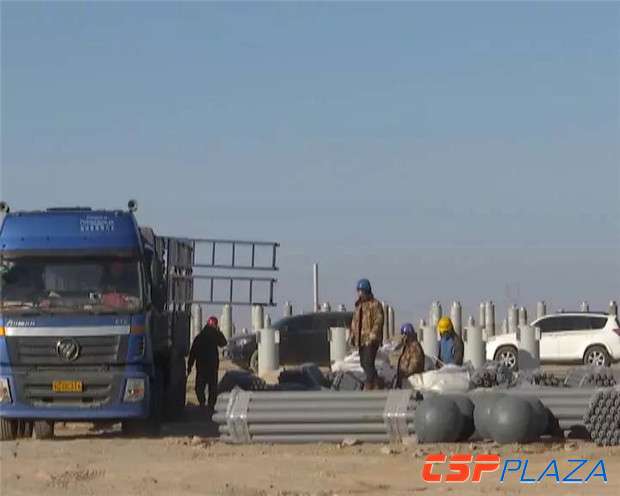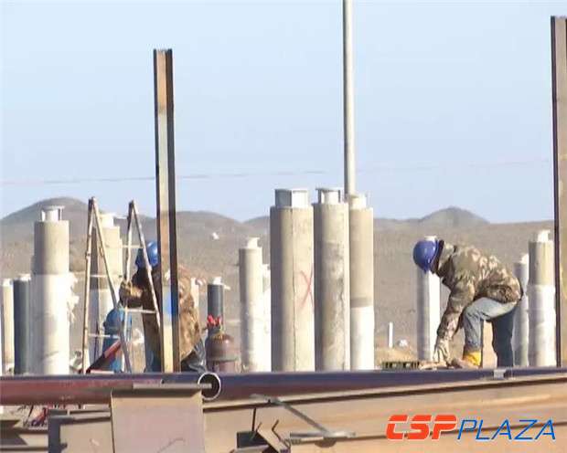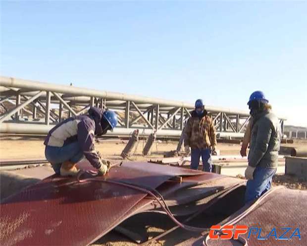 在玉門市鄭家沙窩五萬千瓦光熱發電項目的施工現場,正在進行的是集熱場二次塔網架焊接工作,雖然天氣非常寒冷,但是安裝工人們正在加班加點進行趕工,確保在今年年底時,整個機組能夠并網發電。