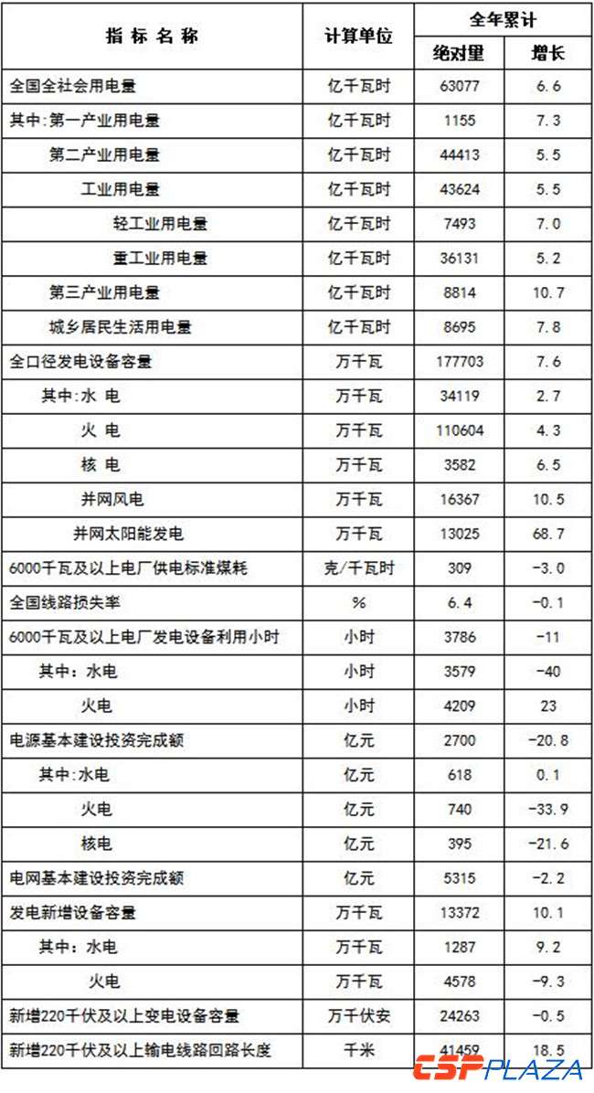全國電力工業統計數據一覽表: