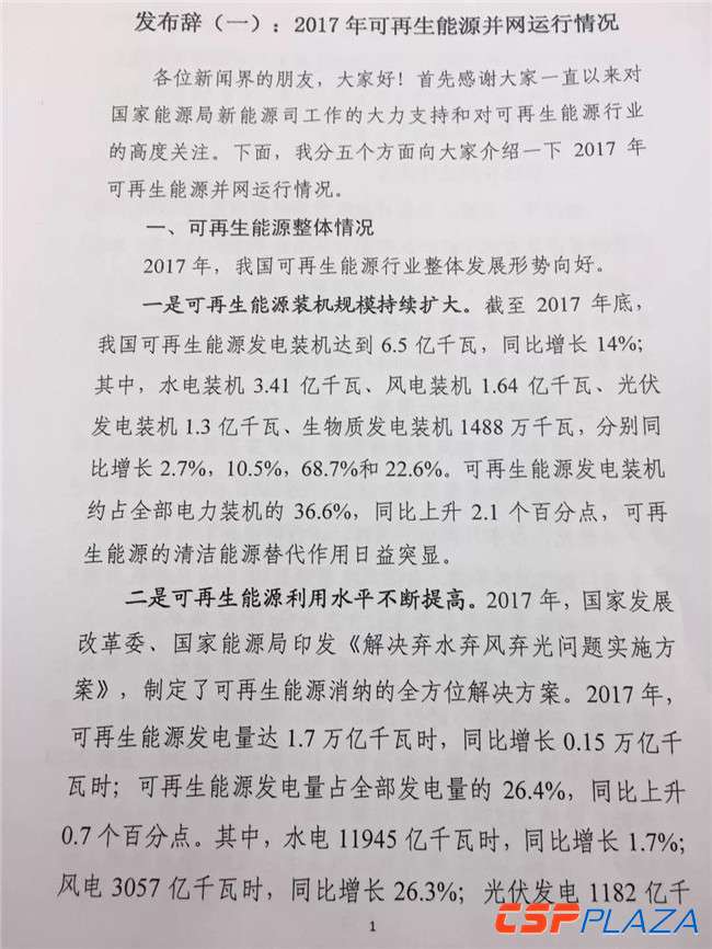 1月24日上午,國家能源局在京召開例行新聞發布會,新能源和可再生能源司副司長梁志鵬在介紹2017年度新能源并網運行情況時表示: