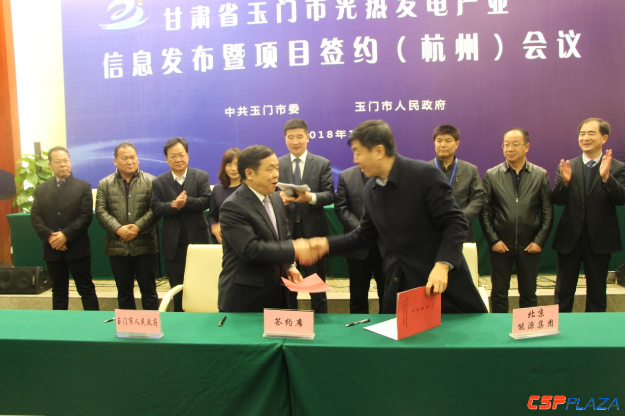 隨后,何正軍代表玉門市政府先后與北京能源投資集團有限公司(100MW光熱項目開發)、四川中核西南新能源有限公司(100MW光熱項目開發)、中國船舶重工集團新能源有限責任公司(150MW光熱項目開發)、青島昌盛日電太陽能科技有限公司(100MW光熱項目開發)、南京郎迪生新能源有限公司(2*30MW斯特林光熱項目開發)、上海電氣風電集團、天津歐陸重工機械制造有限公司(裝備制造)、華北電力設計院有限公司、昆明勘測設計研究院有限公司、中科院上海光學精密機械研究所等10家科研院所、設計單位、光熱發電企業及裝備制造企業簽訂了戰略合作協議及項目建設框架協議。總光熱項目簽約規模達510MW。