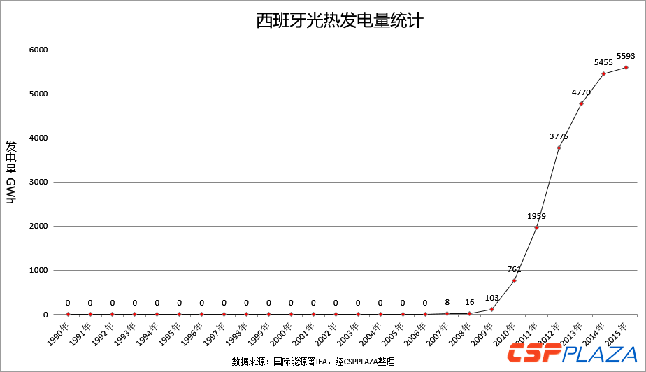 圖表:西班牙光熱發電量統計(1990~2015年)(點擊可查看大圖)