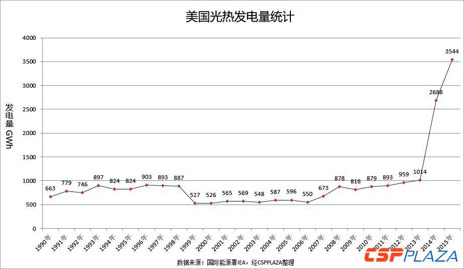 圖表:美國光熱發電量統計(1990~2015年)(點擊可查看大圖)