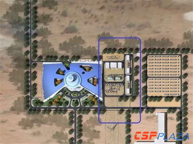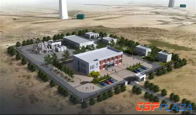 光熱電站位于光伏電站南側,采用塔式熔鹽技術,儲熱時長為12小時。