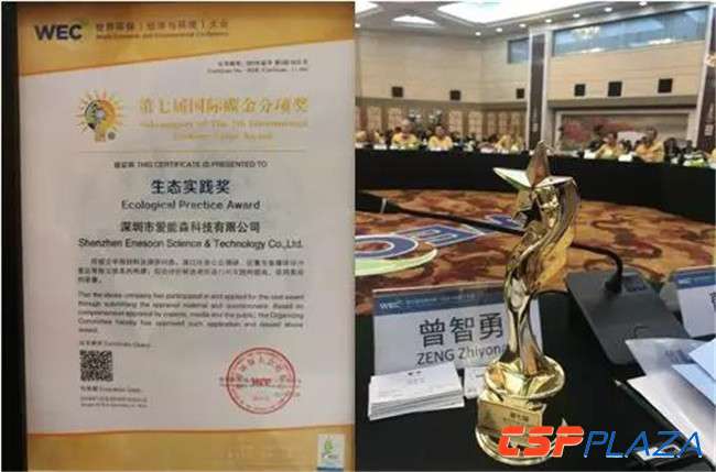 鑒于愛能森在推動經濟與環境和諧、綠色低碳、可持續發展的“綠色征程”中,以低碳理念履行社會價值,世界環保大會授予深圳市愛能森科技有限公司第七屆國際碳金獎“生態實踐獎”。愛能森首席技術官曾智勇作為特邀貴賓進行大會發言,并接受頒獎。