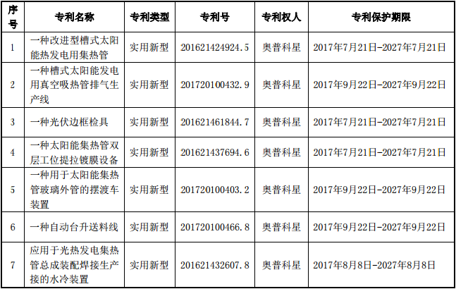 在上述7項專利中,有5項涉集熱管產品或光熱發電行業,詳情如下: