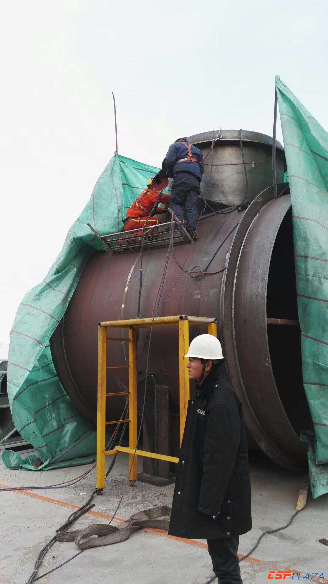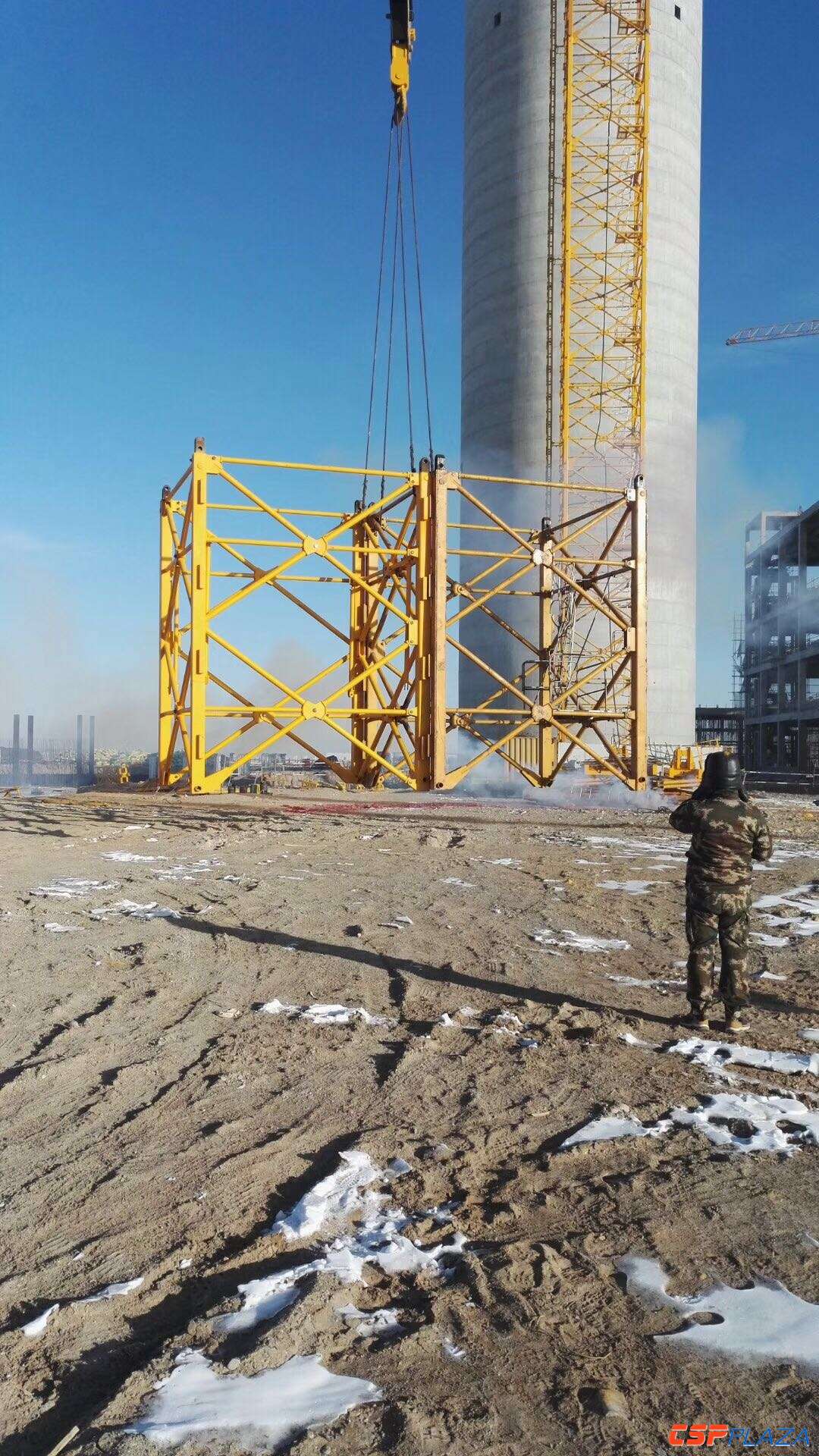 近段時間,雖然敦煌市最低氣溫已接近零下20度,但在敦煌光電園區戈壁上的首航節能100MW塔式熔鹽光熱電站項目工地內,全體建設者為加快建設進度,仍冒著冰雪嚴寒奮戰在施工一線。截止目前,該電站主吸熱塔高度到頂,主廠房框架封頂,鏡場定日鏡安裝完成1000個,吸熱塔吊車已安裝試驗完成。