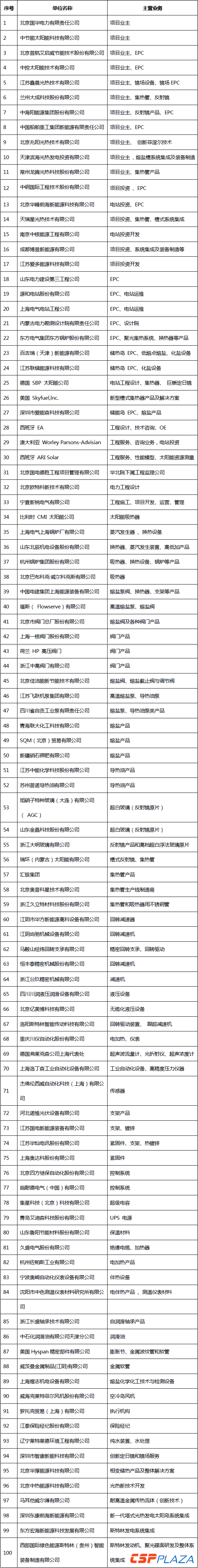 附:CSPPLAZA 100家會員單位名單及光熱主營業務
