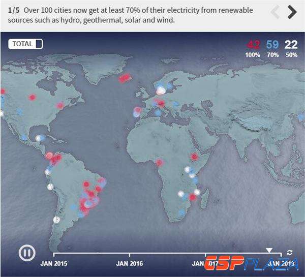 據非盈利性機構CDP數據顯示,目前全球范圍內已經有100多個城市通過利用可再生能源來實現70%的電力能源供應。