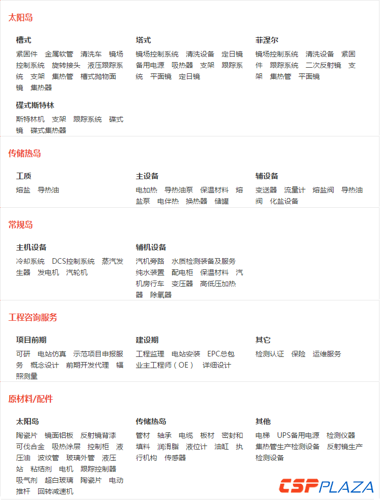 在供應信息層面,指南將以各供應商在中國光熱電站開發供應鏈平臺上發布的供應信息為準錄入。通過將光熱電站開發產業鏈各環節作詳細分類,按此分類統計對應的供應商。各供應商需于2018年5月1日之前完善在該平臺上所發布的供應信息,并確保其真實、準確。5月1日之后將進入本指南的排版印刷階段。