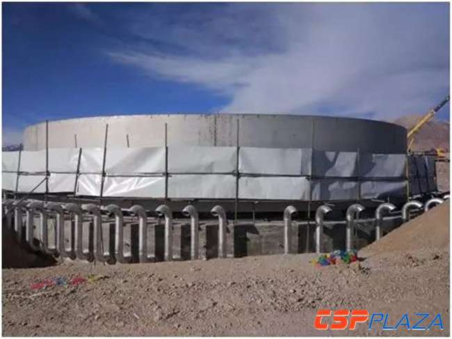 該項目于2016年10月啟動建設,2017年3月正式開始現場施工。截至到目前,項目已完成聚光集熱系統和儲、換熱系統施工圖設計,及發電系統土建專業施工圖設計;定日鏡安裝已完成5600多套,吸熱塔施工至73.5米;換熱系統土建工程、儲罐基礎、主廠房基礎和汽輪機基座工程的施工均已完成,已開始儲罐罐體的安裝。