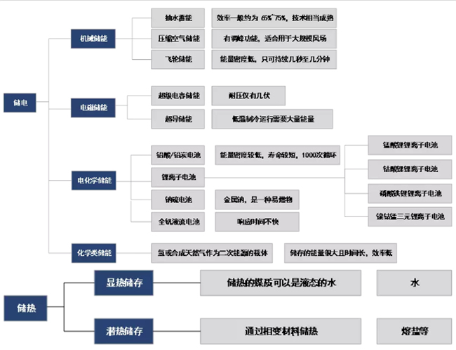 儲能技術領域分類,可分為儲電和儲熱兩大類。