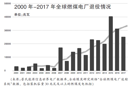 3月22日,全球煤炭網絡(Coal Swarm)、塞拉俱樂部(Sierra Club)和綠色和平組織(Greenpeace)聯合發布報告指出,根據全球燃煤電廠追蹤系統的調查統計,截至2017年,全球包括建設前期準備、在建及完工的燃煤發電項目的各項主要數據均持續大幅下滑,若以目前趨勢發展,到2022年,燃煤電廠的退役速度將會超過新建速度,屆時全球燃煤電廠的規模將會隨之開始減少。
