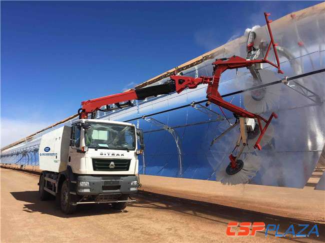 CSPPLAZA光熱發電網訊:鏡面清洗是光熱電站運維過程中不容忽視的一部分,其直接影響到光熱轉換效率及電站發電量。我國首批光熱示范項目所在地大多集中于風沙天氣多且水資源相對缺乏的西北地區,相對惡劣的自然條件給鏡面的清潔帶來一定難度。與美國、西班牙相比,鏡面清洗頻率更高,用水量更大,相應的鏡面清洗成本也會增加。