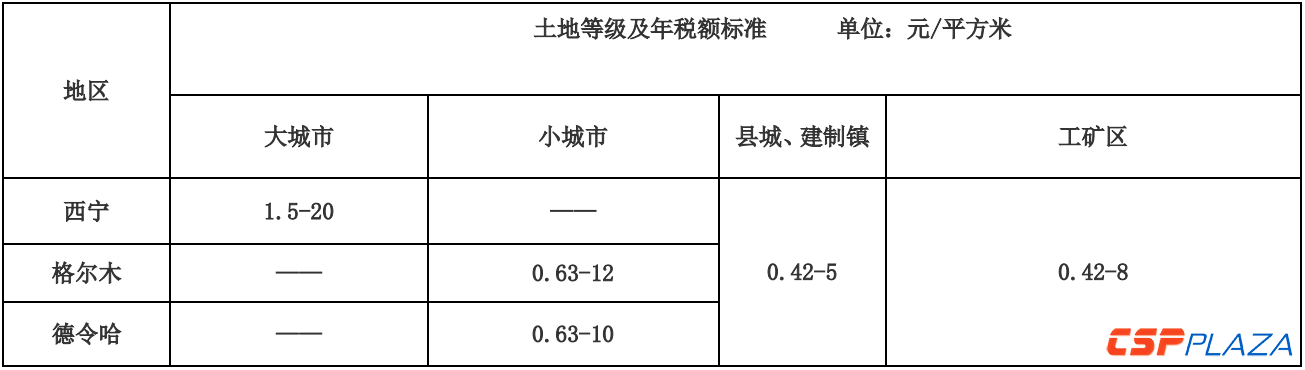 表一:青海地區城鎮土地使用稅年稅額標準
