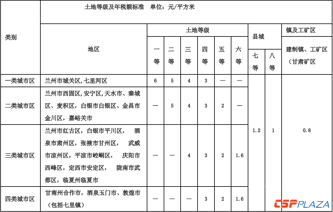 表三:甘肅省城鎮土地使用稅暫定稅額標準