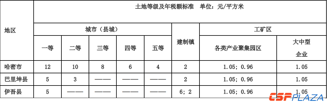 表二:哈密地區城鎮土地使用稅年稅額標準