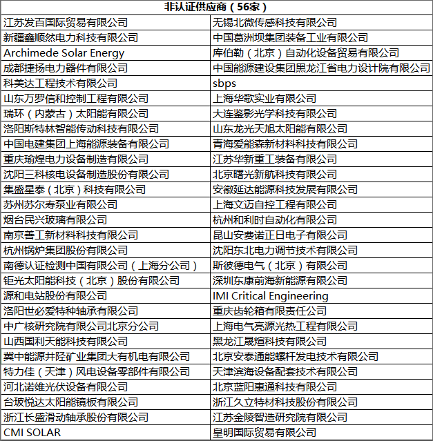 三、一般排序:中國光熱電站開發供應鏈平臺非認證供應商