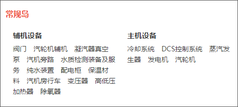 常規島部分與傳統化石電站相似,涉及到的相關裝備也相對更加成熟,主要分為主機設備和輔機設備兩部分,關鍵裝備汽輪機、蒸汽發生器和發電機等均屬此列,詳見下圖: