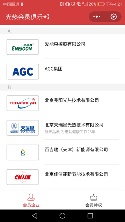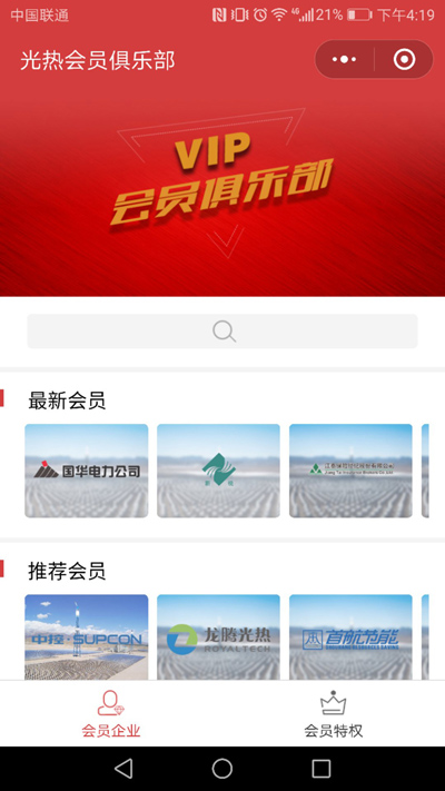 微信小程序及會員信息相關頁面支持分享給好友或微信群,但暫不支持分享至朋友圈。您可通過掃描上述二維碼或在微信搜索框中搜索光熱會員俱樂部的方式找到該小程序。會員單位如需完善小程序內展示的相關信息,請聯系CSPPLAZA。如有關于該小程序的優化建議和意見,歡迎及時反饋給CSPPLAZA。