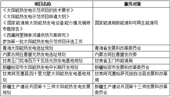 作為我國電力規劃設計行業的“國家隊”,電規總院也為國家和地方政府提供多項光熱發電行業方面的咨詢工作(詳見下表)。