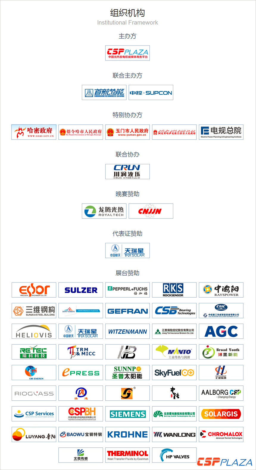 至5月5日,本屆大會的贊助商陣容已經基本形成,贊助陣容空前強大(詳見附圖),共有來自政府機構和全球光熱產業鏈的59家單位贊助支持本屆大會的成功召開。如此強大的贊助陣容體現的是光熱行業對CSPPLAZA年會品牌的由衷信任。