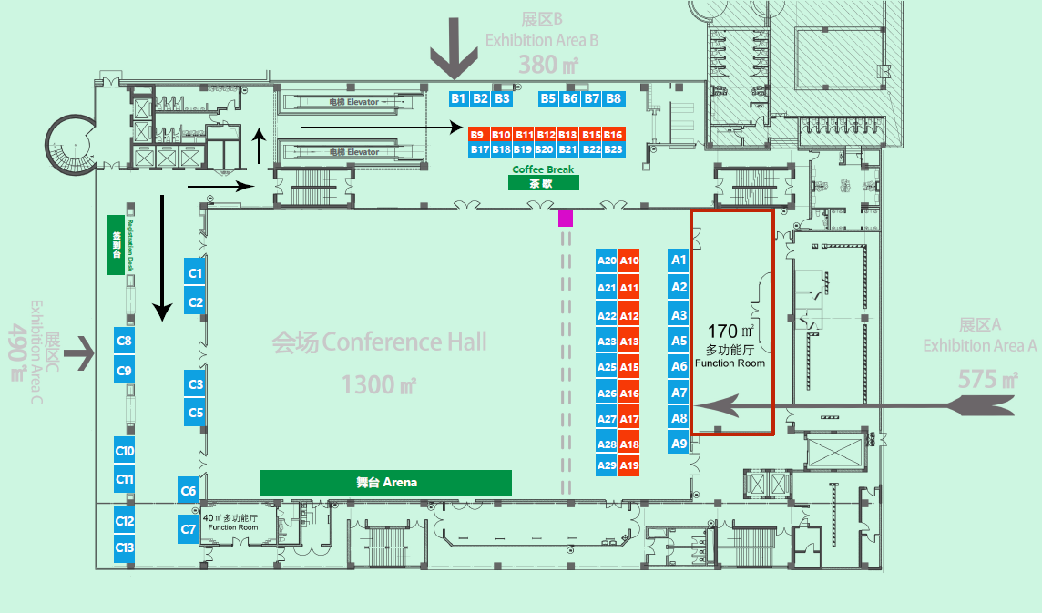 2、活動地點:在大會主會場隔壁的多功能廳舉辦,位置優越,可用面積170平方米。(見附圖)