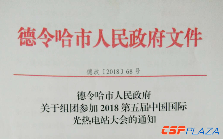 CSPPLAZA光熱發電網訊:日前確定,哈密、德令哈、玉門、敦煌、阿克塞五大光熱重鎮的地方人民政府將分別組團參加2018中國國際光熱電站大會。