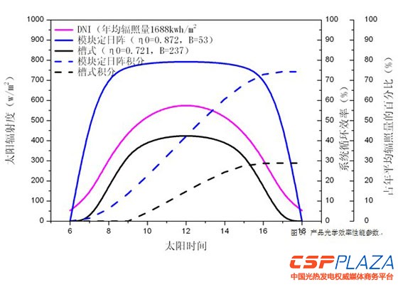 圖:產品年平均光學效率性能與槽式比較