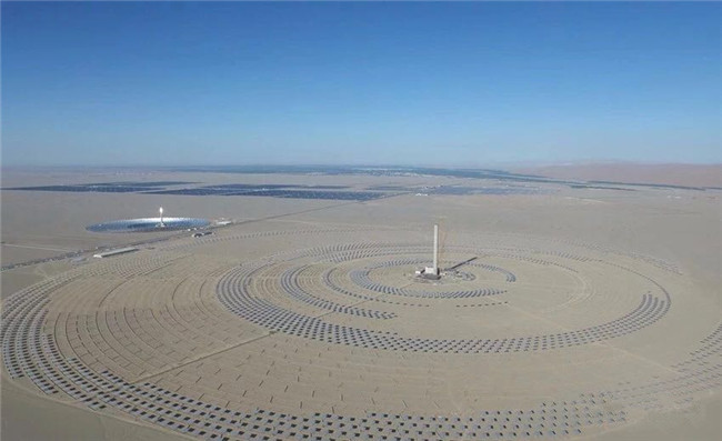 2016年12月26日,該項目正式并網投運,也意味著中國人建成了全球第三座、亞洲第一座可實現24小時連續發電的熔鹽塔式光熱發電站。