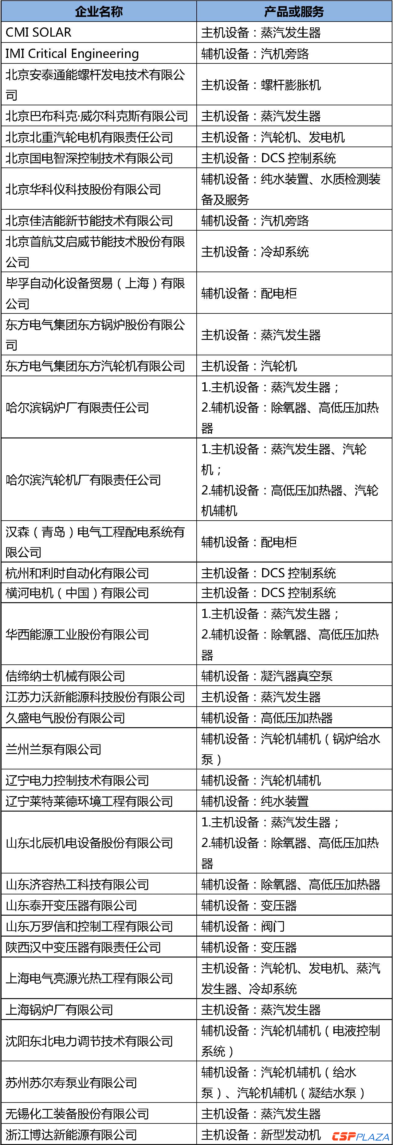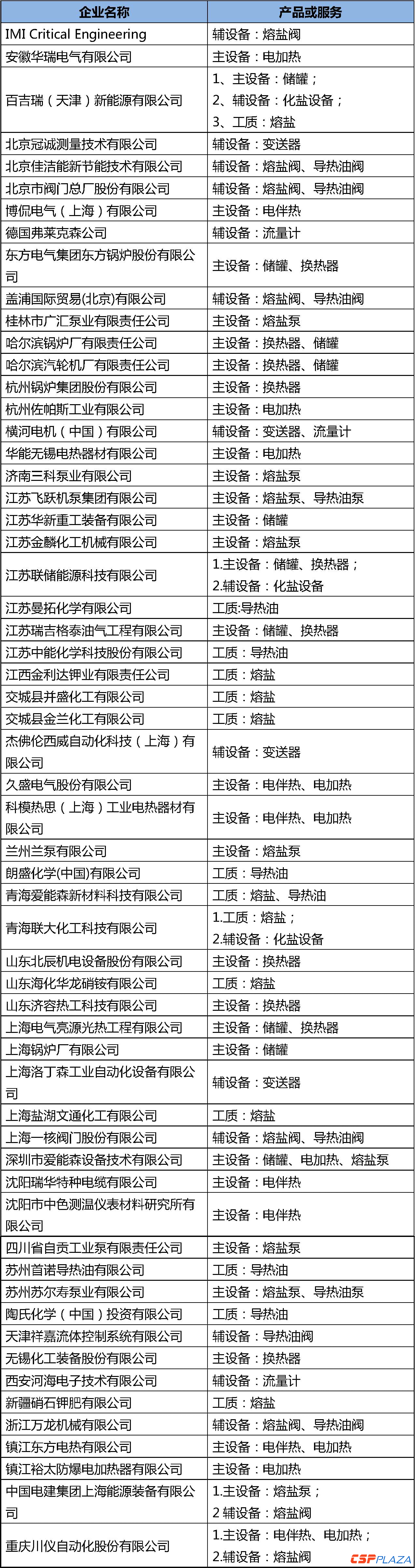 以下為傳儲熱、常規島相關供應商及其主營的產品和服務(按單位名稱拼音排序,排名不分先后):