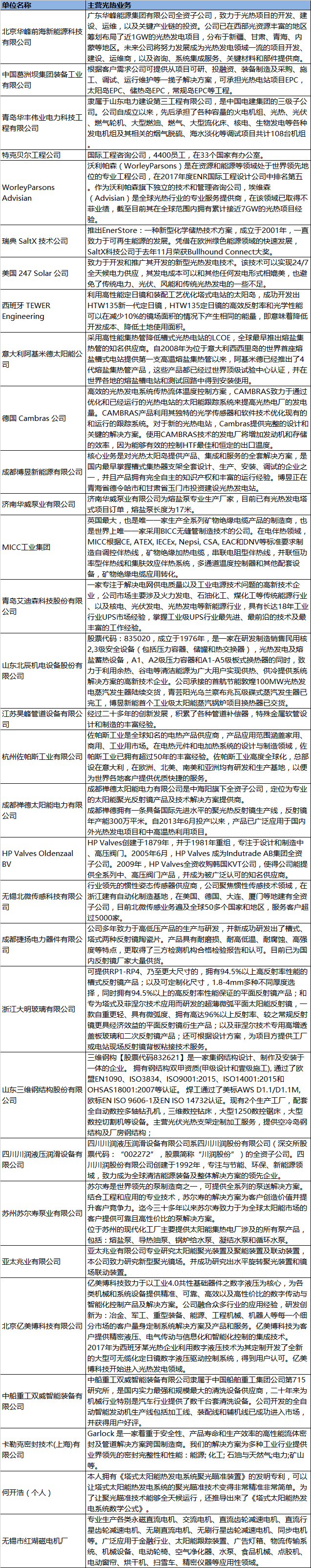 附當前已申請的光熱企業商務對接專場參與企業: