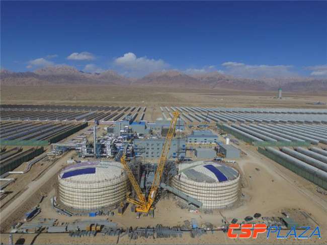 目前,正在進行回路出口溫度調整、調試工作,及太陽島、常規島、傳儲熱島三島聯合調試配合工作。相關各方正在有序地穩步推進各項建設進程,現已取得了階段性的建設成果,預計將成為中國首個并網投運的光熱示范電站。