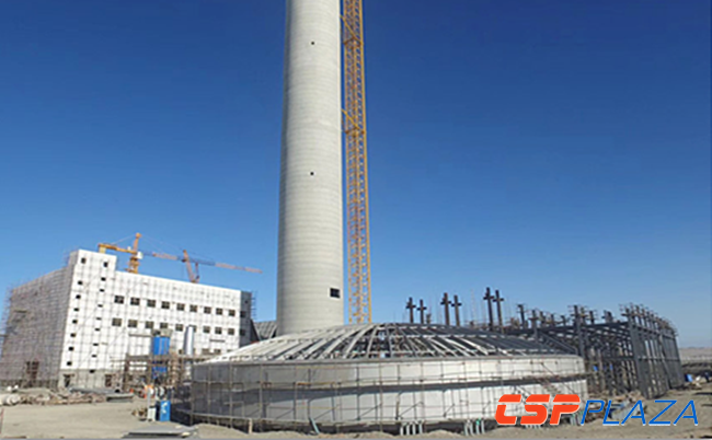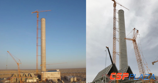 吸熱塔,土建完工是去年年底,現在塔頂的鋼結構正在安裝。