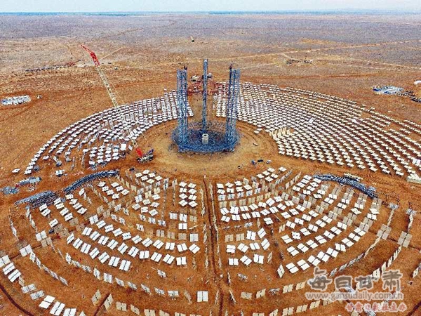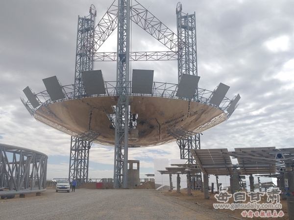據每日甘肅網報道:作為國家首批光熱發電示范項目之一的玉門鑫能50MW光熱發電項目,日前建設進展順利,項目1號模塊土建已完工,二次塔格構柱吊裝全部完成,球形網架已組裝完畢,正在進行焊接安裝,定日鏡已安裝完成,擬于年底建成并網發電投入運營。