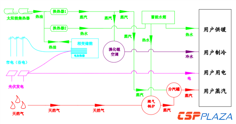 我們剛才說了,剛才愛能森科總也介紹了相當于多能互補的這樣一種方式,我們也看好這種模式,具體一點,主要是用在工業區的分布式多能互補,首先,我們的關注點在工業區場地的合理利用,工業區相對來說場地會多一些,并且屋頂是我們利用的非常有利的區域,輕型槽式可以在屋頂建設,效率非常高,并且很穩定。在這中間,可能行業內一直關注工業區內,像北京、天津這些大城市土地是非常貴的,如果把這部分土地費用進去顯然是不合理的,所以,有效利用工業去土地非常重要,一個是廠內土地,包括屋頂。比如工廠周邊一些單位可能用能的負荷沒那么高,但是,他有場地,這也是合理利用的區域,可以以合同能源管理的方式把這些場地合理的利用起來,用這種方式的話可以降低用熱單位的用熱成本,結合谷電和其他經濟性的能源可以使單位用熱更經濟。同時,不管槽式、菲涅耳,還是其它太陽能聚光技術,建成之后本身就是很亮麗的景觀。