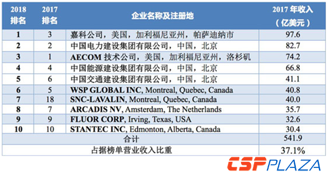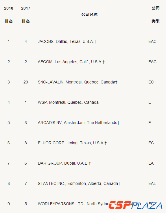 表:2018ENR全球工程設計公司150強前十強企業名單