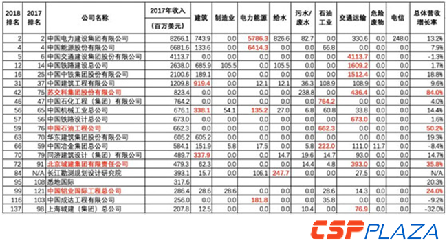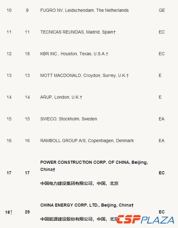 表:ENR2018國際225強工程設計企業中國電建、中國能建排名