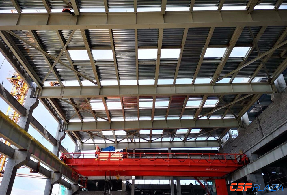 2018年7月17日,中控太陽能德令哈50MW塔式熔鹽光熱發電項目動力島區主廠房順利封頂,具備汽輪機安裝條件。