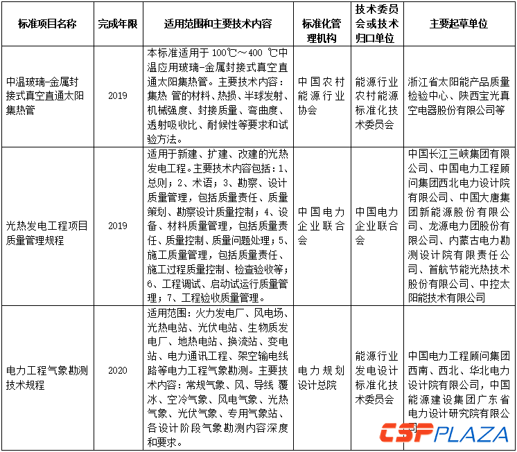 涉及太陽能熱發電行業的標準分別為: