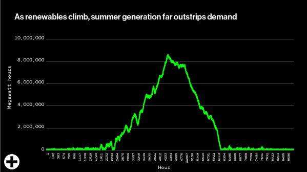 總部位于波士頓的能源政策智庫Clean Air Task Force最近發現,加州可再生能源達到80%的標志意味著夏季將有大量的剩余發電,960萬兆瓦時的能源需要儲存。達到100%將需要3630萬。