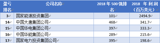 不過,在早前公布的2018《財富》500強中,五大發電集團全部入選。新組建的國家能源集團在榜單中位列第101位,而單就盈利能力來看,其更是躍居中國上榜能源企業第3名,利潤達到24億美元。