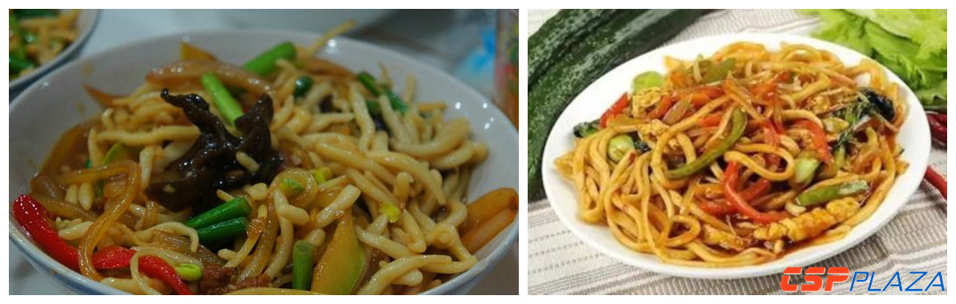 拉面出鍋后不帶湯,用刀切成短條,倒入用粉絲、肉末、辣椒和少量菜做好的混菜鍋內混炒而成。出鍋前的制做等同于拉面的制做,出鍋后的混炒法又相近于炒面片的混炒,但口味與兩者各不相同。先長后短,先煮后炒、面菜混一。
