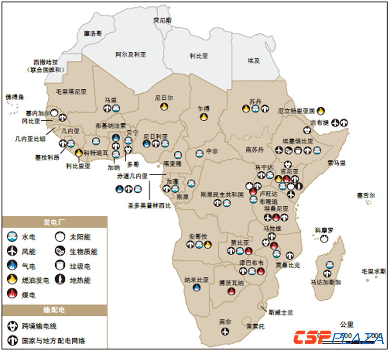 地中海沿岸的北部非洲的發電量占了全非洲3/4以上,且以火電為主。其他國家的電力來源主要是中小水電,電網規模也較小,需要投資更新。