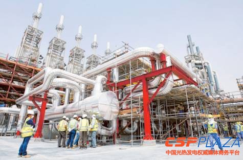 該電站于2010年7月開始建設,太陽能集熱場由258,048面槽式反射鏡組建,共設置了192個集熱回路,每個回路擁有4套集熱單元,總計768套集熱單元,單個集熱單元由36套槽式集熱器組成,共使用了27648根真空集熱管,占地面積2.5平方公里,鏡場采光面積627,840平方米,年發電量210GWH,年減排二氧化碳175,000噸。