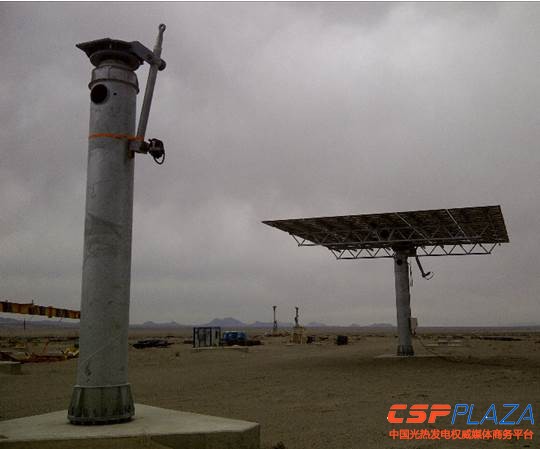 下圖顯示的是一個混凝土基座和定日鏡支柱已經建設完成,正等待安裝定日鏡。該項目總計將安裝約1萬7000面定日鏡。