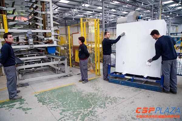 自動化的生產設施和專業技能正被應用于組件的沖壓和裝配。SENER公司設計的槽式鏡和定日鏡就是很好的案例,再比如BrightSource能源公司用于定日鏡組裝的機器人。